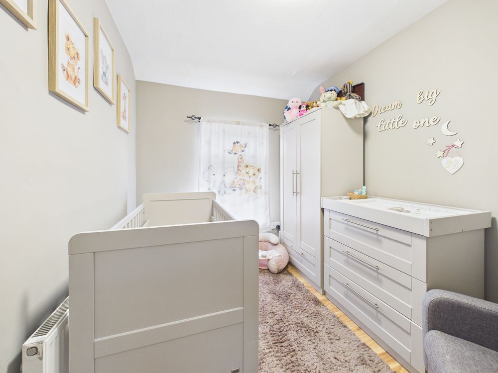 Upstairs, the property comprises two well-proportioned bedrooms. The master bedroom is spacious and filled with natural light, while the second bedroom offers flexibility as a guest room, nursery, or home office. The main bathroom features a electric shower & bath.