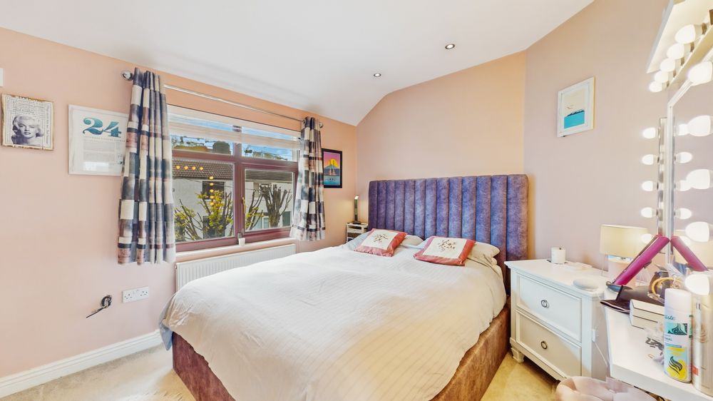 Upstairs, the property comprises two bedrooms: a spacious double bedroom complete with built-in wardrobes, and a second double bedroom positioned to the rear, perfect as a guest room, home office, or nursery. A main family bathroom completes the accommodation.