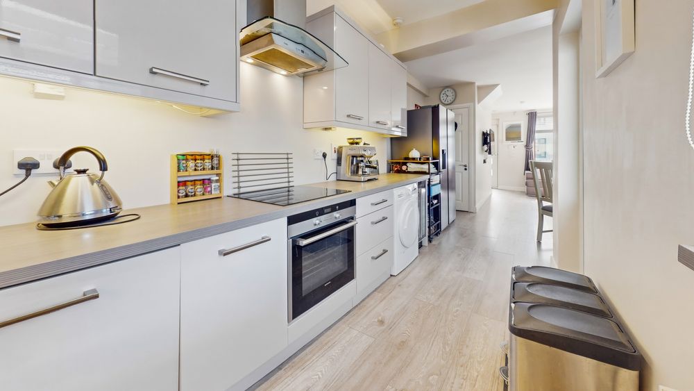The accommodation is well laid out and thoughtfully designed for modern living. Upon entering, you are welcomed into a bright open-plan living and dining area, creating a warm and versatile space ideal for both relaxing and entertaining. To the rear, an extended kitchen provides ample room for cooking and storage, with direct access to the garden.