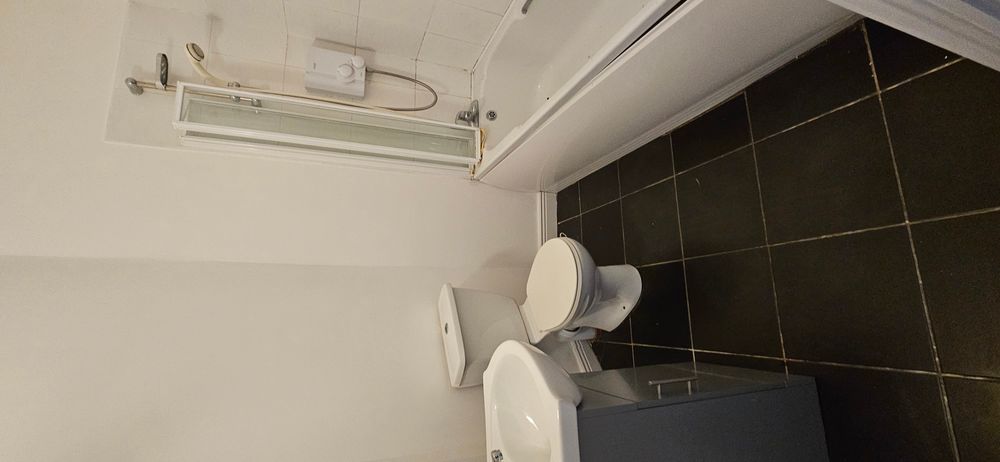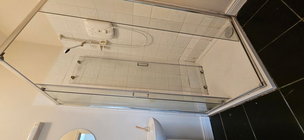 Tiled floor, wc, electric shower, whb, shaving light with socket.
