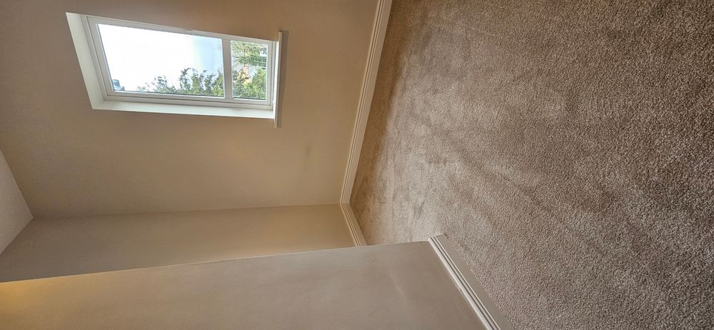 Tiled floor, radiator, newly carpeted stairs, power points.