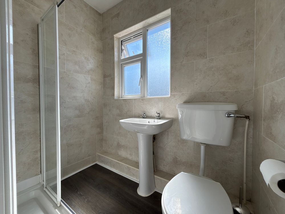 Timber flooring, tiled walls, wc, whb, triton electric shower
