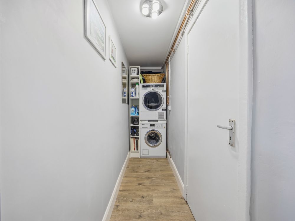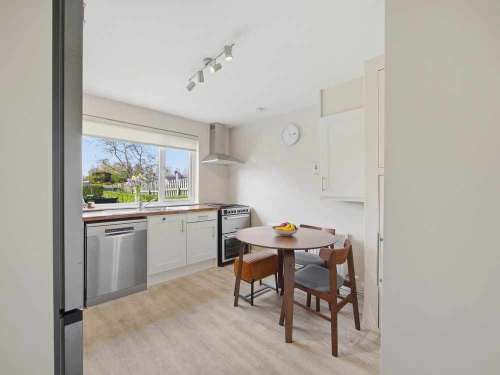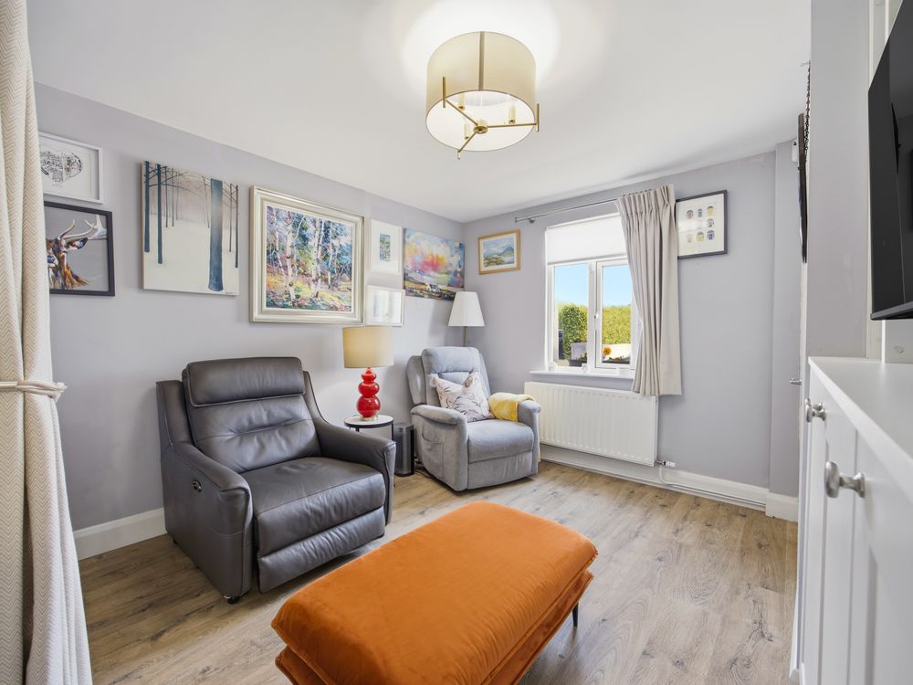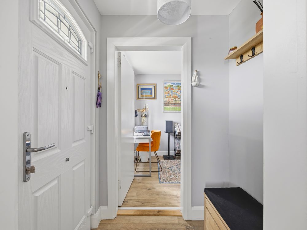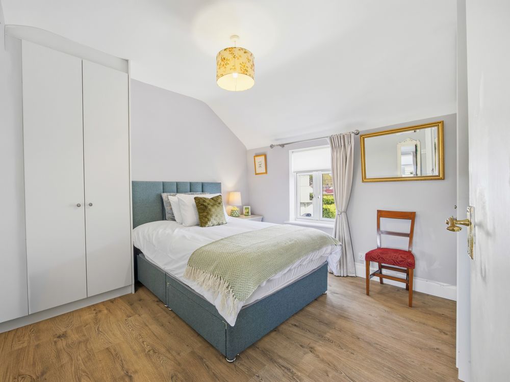 On approach, the house's period charm is unmistakable, with a pretty painted stone wall, wrought iron gate and a newly installed composite front door in a timeless Agate Grey colour. On entering, to the left you have a ground floor bedroom / study and then to the right a cosy sitting room with fitted cupboards and shelving. Off this space a handy nook serves as an ideal position for the utility appliances and from here the hallway, off which you have the elegantly tiled bathroom to the left and kitchen to the right.