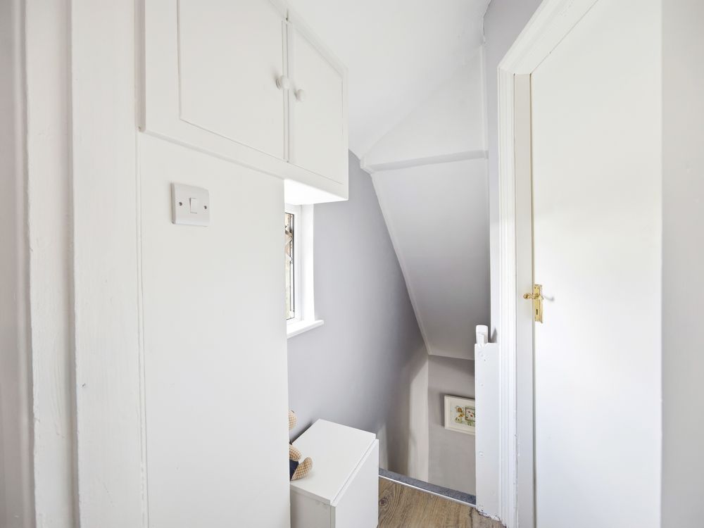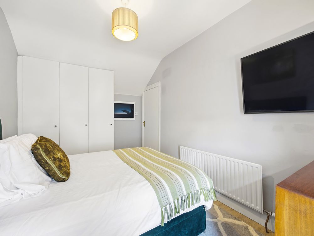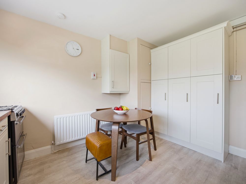 Back inside, the kitchen enjoys a bright, sunny outlook over the garden and it is well appointed with ample base and eye level kitchen cabinets, generous worktop space, and a recently fitted gas boiler that has been neatly enclosed. The upstairs of the home is approached by a staircase with decorative cast iron balustrade, and from the landing you have two double bedrooms, both with fitted wardrobes. The first bedroom also features a beautiful ornate cast iron fireplace at its heart.