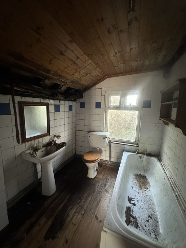 The accommodation comprises a living room, kitchen, bathroom and three bedrooms. Mains water supply. Septic tank on site. There is a vehicular side entrance. This is a renovation project.