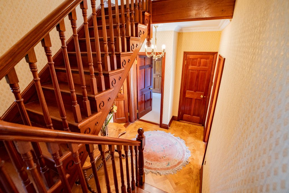 From the outset, the property makes an immediate and lasting impression. A distinguished entrance, framed by brick piers, natural stone walling, elegant iron railings, and electric gates, provides both privacy and security while setting the tone for the quality that lies beyond.