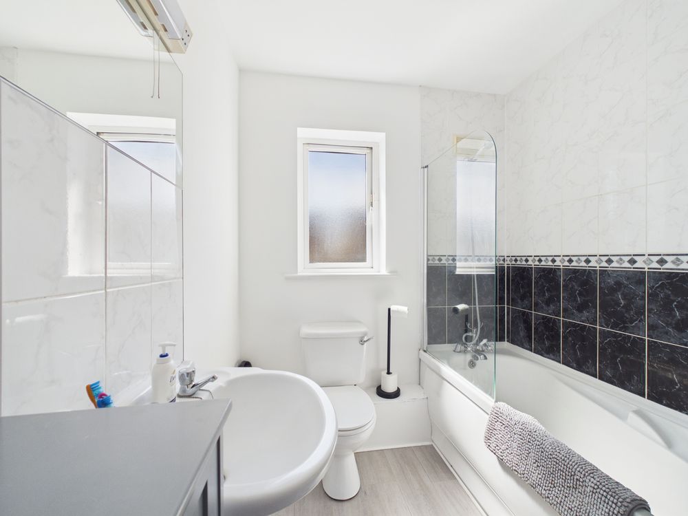 The first floor enjoys a master bedroom with a wall of wardrobes and a full ensuite. The second bedroom also enjoys built-in wardrobes The family bathroom is beautifully appointed.