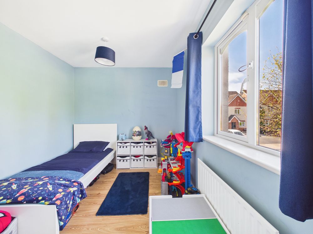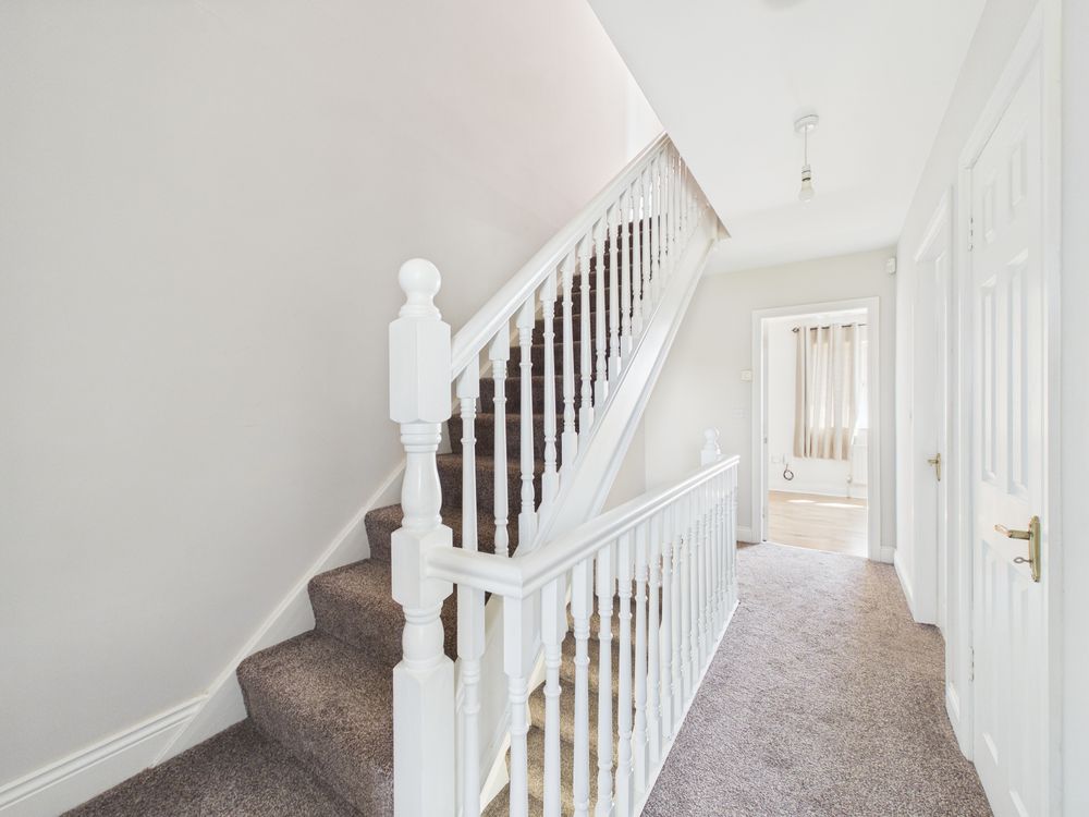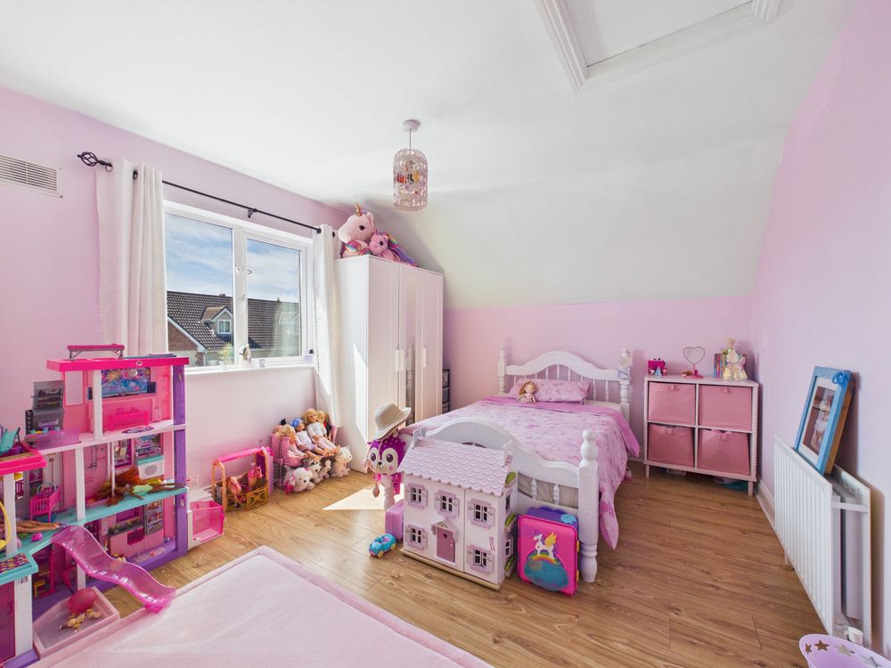 On the second floor, there is a massive double bedroom. Being an end house this room has a gable end picture window, flooding the room with natural light.