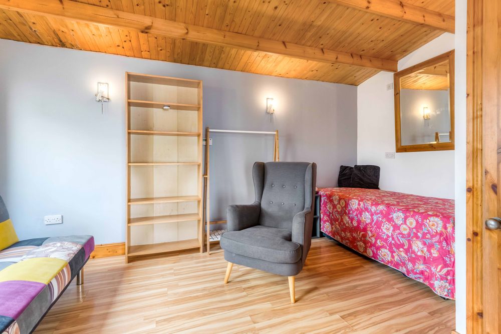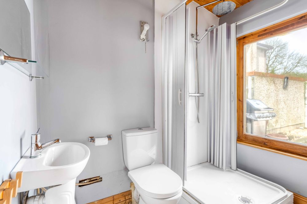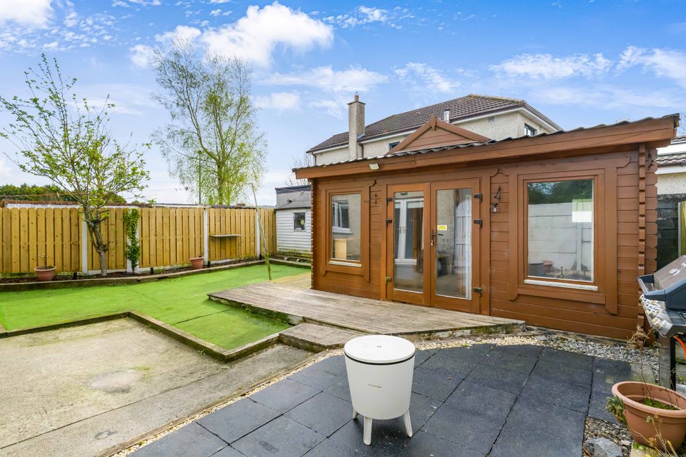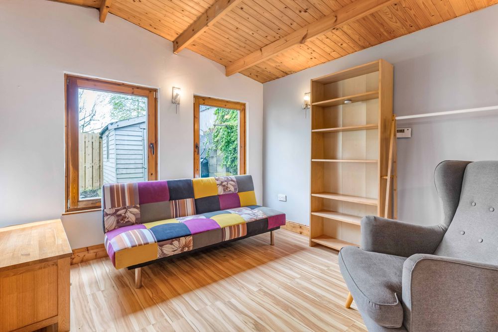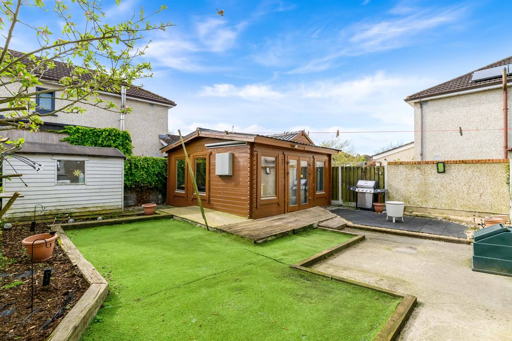 large detached garden room with electricity, water & plumbing. Separate garden shed. Parking, side access, large south-easterly facing rear garden.