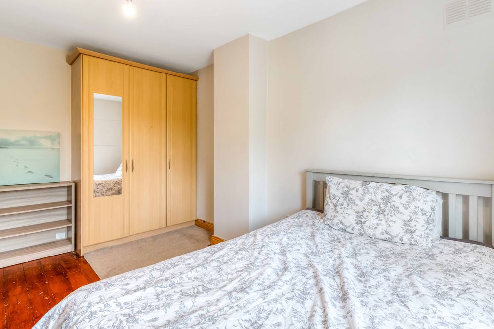 front double bedroom with laminate wood flooring, built-in wardrobes, curtains/blinds included