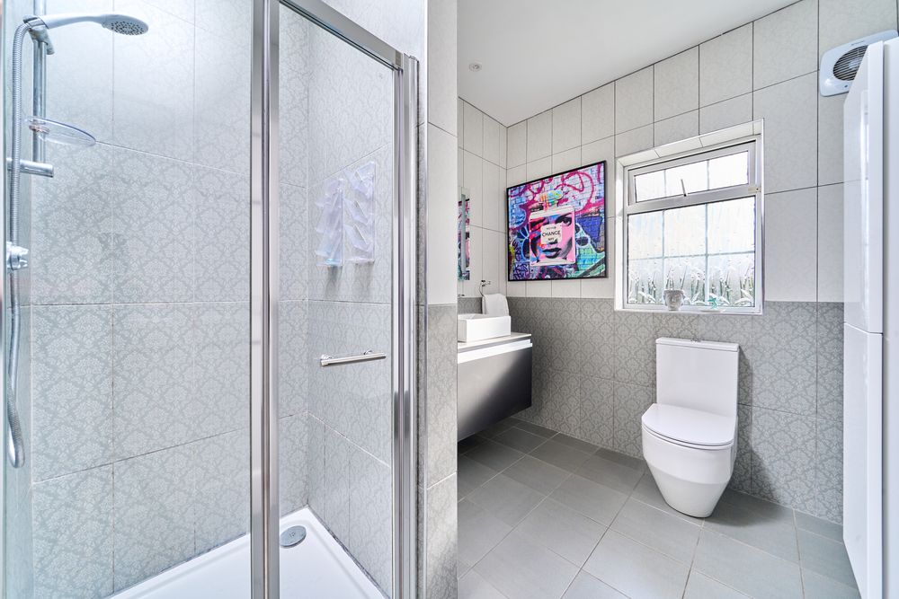 beautifully appointed family bathroom with bath, in-bath shower, wc & whb