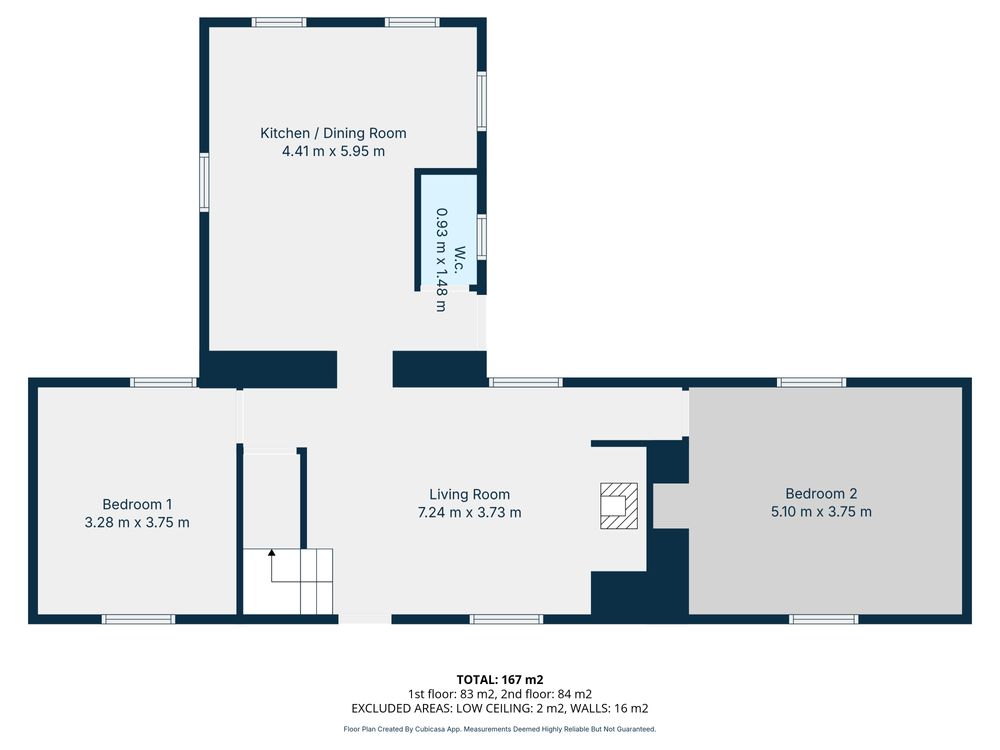 Accessed directly through main door. Dual aspect to front and rear. Limestone surround fireplace with solid fuel stove. Natural slate flooring. Archway leading into kitchen/dining room. Traditional internal door opens onto carpeted stairs to upstairs accommodation.