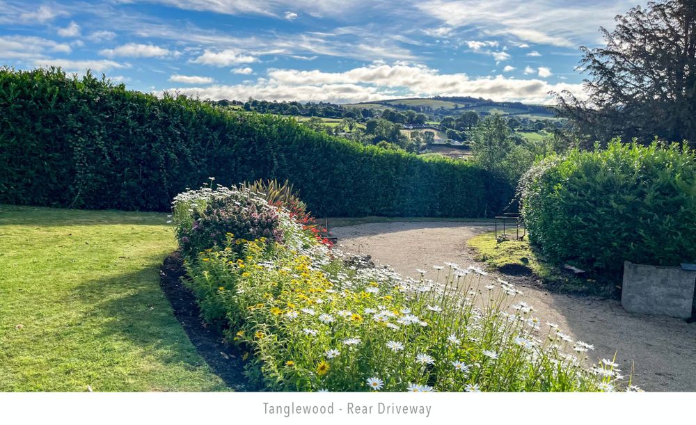 Entering the property through wrought iron electrified gates, you will drive along a silver birch tree-lined avenue. Turning left will bring you to the front carpark, and continuing on straight will bring to the rear parking area, where you will find ramp access to the house. Set on 2 acres, the buildings are positioned in the centre of the plot and surrounded by eight different gardens - Front Lawn Garden; The Woods; The Meadow; The Copse; The Court Garden; The Embankment Garden; The Orchard and The Vegetable Garden. There’s also a tiny secret / concealed garden at the top back of the grounds. Surrounded by trees, and with 12 to 14 foot high boundary hedging, Tanglewood is completely private and secure. The variety of habitats within the grounds have recorded rabbits, foxes, pine martens, shrews, and hedgehogs among its mammal population, and over thirty species of birds including woodpeckers, owls and sparrow hawks, all enjoying the rich ecosystem. Encouraging biodiversity has always been an important mission for the current owners.