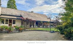 The property has 4 to 5 bedrooms, depending on the configuration decided for the stand-alone Hay Cottage. All bedrooms are effectively large suites with the potential to configure more bedrooms, should it be desired. There are 5 bathrooms throughout the property, consisting of 5 toilets, 4 showers and 2 baths. Located centrally within the property layout, everything in Tanglewood stems from the kitchen and family living area. The kitchen’s large double doors opening out to the front courtyard act as the main entrance. Stepping through the entrance into the kitchen is truly breath taking. Its grand scale with 14 foot high timber clad vaulted ceilings is a magnificent theatre for the culinary arts. With a 3m x 2m island unit prep area, pull out drawers for all the cooking equipment, three single drawer dishwashers, two large Belfast sinks, and multiple other cooking considerations, this kitchen is any chef’s dream. Two steps up from the kitchen brings you to the large, and yet cosy, family room with a wood burning stove, 10 foot hight wood panelled designed ceilings and large double doors out to the back courtyard and orchard. One side of the kitchen connects to the old barn bedroom wing with its ground floor games room, as well as access to the pantry, main store room, wine cellar, utility room and rear entrance. The other side of the kitchen connects to main cottage dining room, living room and access to Stables Cottage. Stepping through the double doors into the dining room brings you into the jaw-dropping space of the old main cottage with 16 ft hight timber clad vaulted ceilings, large restored oak beams, wide plank solid oak flooring and beautifully pointed 3ft thick stone walls. A large stone chimney breast opens to both the dining and living room sides of the room with a double sided wood burning stove. Continuing from the dining half to the living room half of the main cottage brings you to a small connecting corridor, at the other gable end, that connects into Stables Cottage which is located in the easterly wing of the house. Stables cottage, with its own bedroom, living room, bathroom, back door and its own separate front porch entrance, can be completely self-contained or included as part of the main house. Outside of the main cottage, on the easterly side of the front courtyard, we have Hay Cottage. A new build that replaced the original footprint of the original hay barn, Hay Cottage is currently used as a stand-alone office / studio space. But with two large rooms, a shower and toilet room, and another small room, it has the potential to be a self-contained living space. The front of Hay Cottage connects directly with the front parking courtyard through large double doors, meaning visitors can come and go without encroaching upon the main residence. The back overlooks the front lawn and courtyard through cottage style half doors. In addition, Hay Cottage also has its own patio area at the southern gable end that overlooks stone steps into the woods.